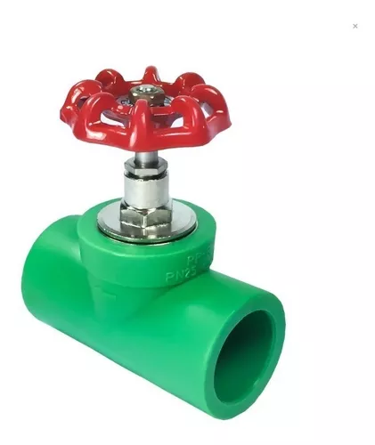 Llave de paso de termofusión en color verde, permite controlar el flujo de agua en sistemas de tuberías. Fabricada con materiales resistentes para garantizar durabilidad.