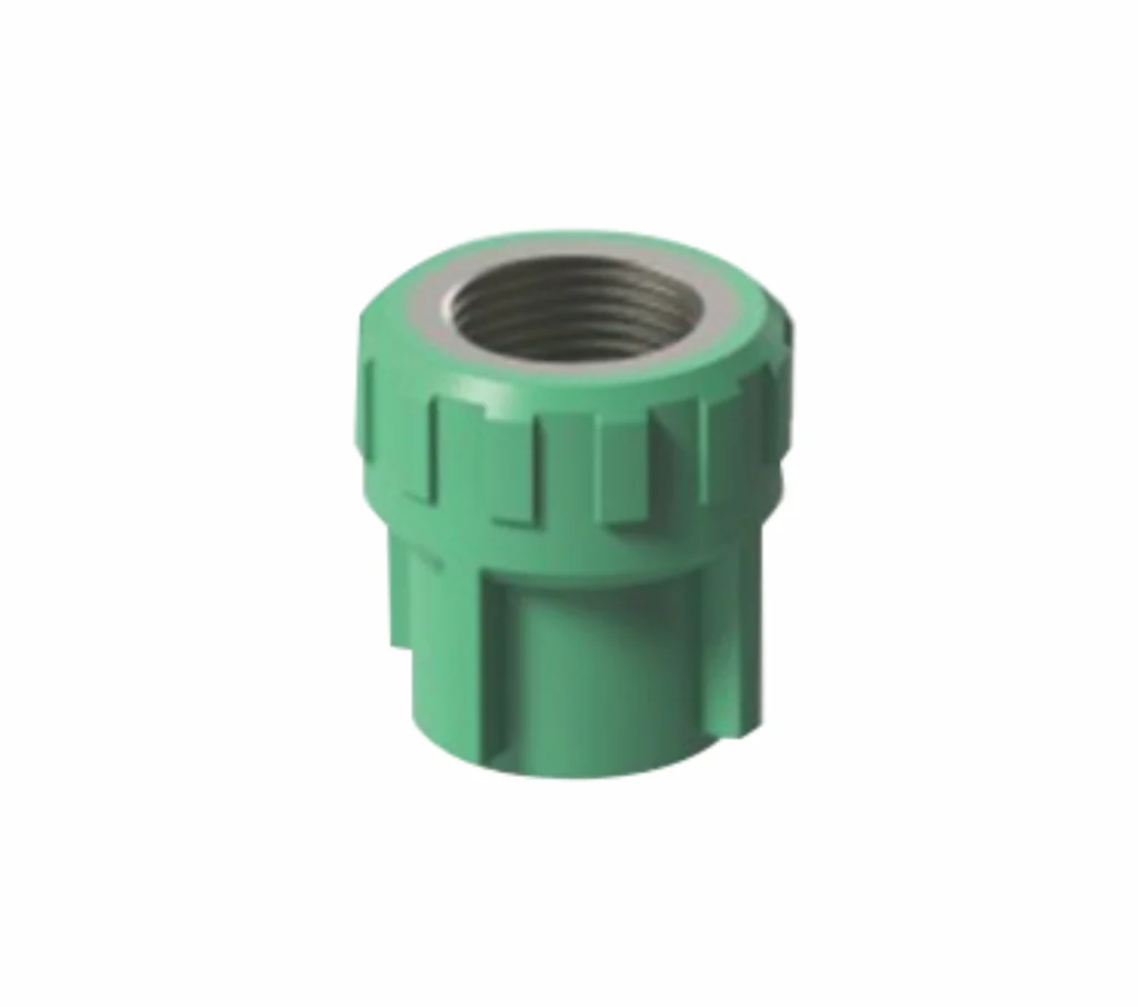 Nudo terminal de termofusión en color verde con conexión hembra de 3/4 pulgada. Diseñado para terminaciones en tuberías, garantizando sellado hermético.