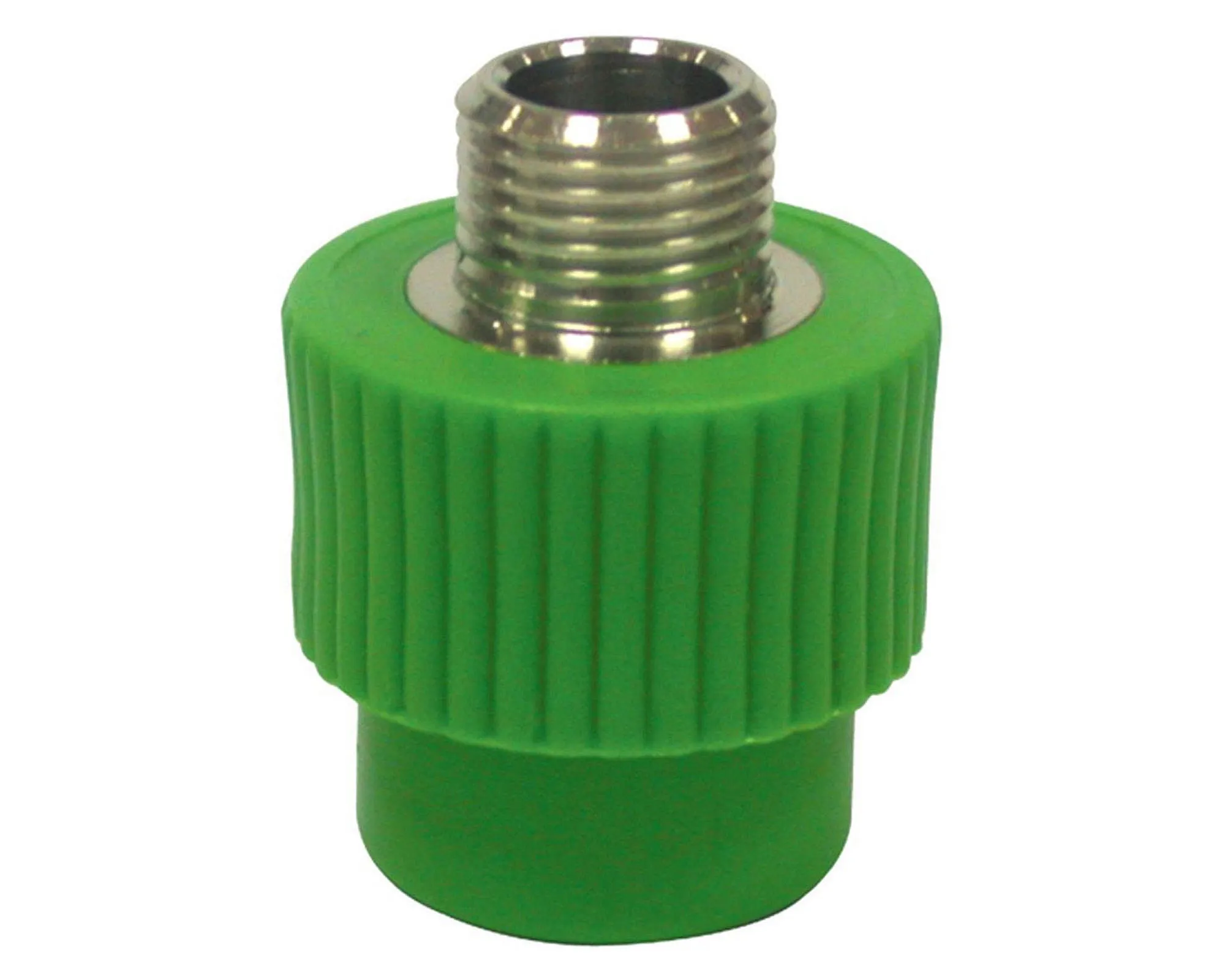Pieza universal de termofusión en color verde para tuberías de 1/2 pulgada. Diseñada para adaptarse a diferentes tipos de conexiones, garantizando versatilidad.