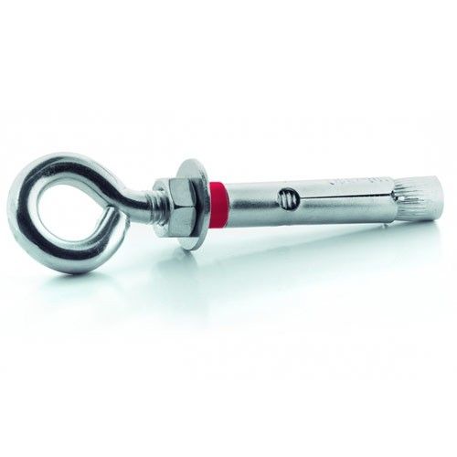 Expansiones mecánicas tipo cancamo M8, ideales para fijaciones en hormigón y bloques. Capacidad de carga de 1000kg. Incluye tornillo M8 de 120mm. Paquete de 30 unidades.